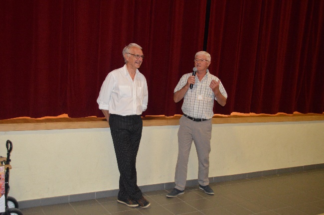 ![]() ![]() Nous avons eu la chance d’avoir avec nous une municipalité accueillante et efficace. Monsieur le maire nous avait fait monter deux barnums qui se sont avérés très utiles entre autre pour nos apéritifs qui ont, il faut bien le dire, donné le tempo de notre rencontre. |
