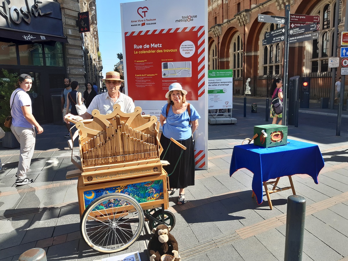 La ville de Toulouse a décidé de passer en piétonnier une des principales rues de la ville. A cette occasion,le Service d’Animation de l’Architecture et du Patrimoine de la communauté de commune a voulu rappeler les conditions de création de cette rue au XIXe siècle dans une ambiance de rue du l'époque. Il était naturel de prévoir des orgues de barbarie...