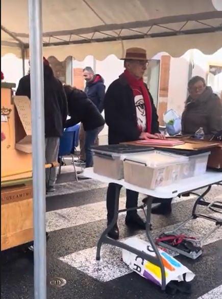 A l'approche de Noël, la mairie de Baziège a voulu donner un air plus festif à son marché habituel et a invité les orgues de barbarie à amimer le public.